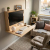 Very happy with this desk. Nice wood, well constructed, handy storage spaces. There was enough adjustment in the mounting board to span studs and still center in small wall area. With instructions, we were able to set at height so desk top was at the correct height for me.