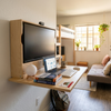 The station is designed for zero-footprint living. When you fold it up, it retracts to a depth of just 6 inches off the wall. It effectively disappears into your room, looking like a sleek, modern cabinet until you are ready to deploy it again.